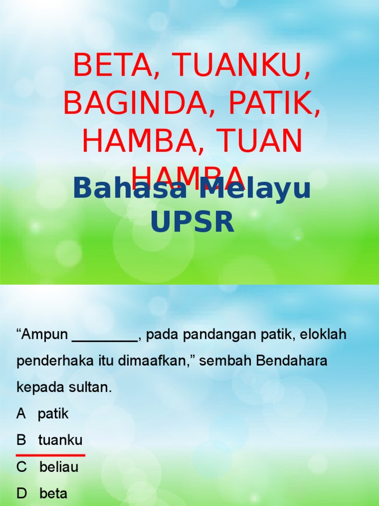 Related : Bahasa Istana Dan Maksud : Pembelajaran ini memberi pengenalan kepada bahasa istana dan penggunaannya..